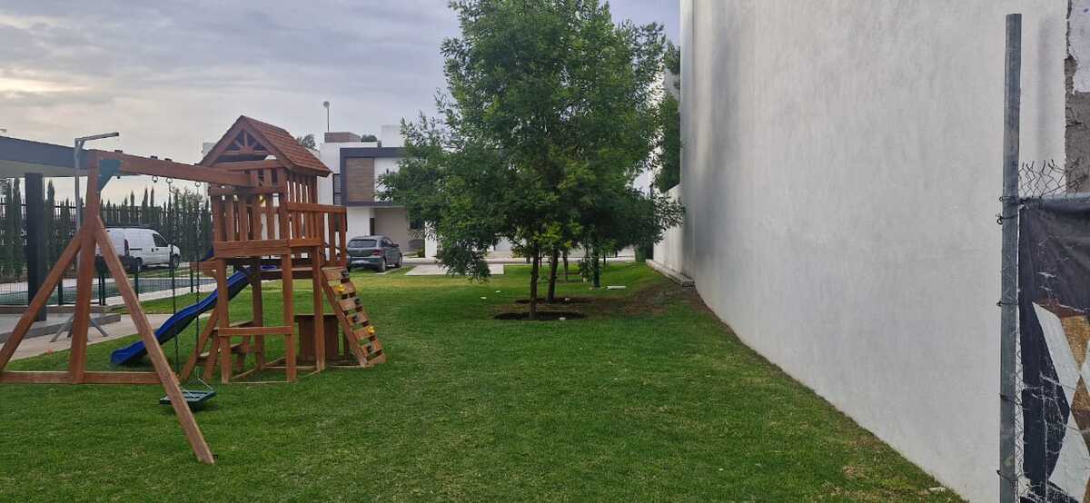 Extraordinaria casa nueva de tres niveles con estudio, baño completo, amplia estancia, cocina integral, área de lavado y jardín en planta baja; recámara principal con vestidor y baño en segundo nivel, y dos recámaras secundarias con closet y baño completo; tercer nivel con amplio roof garden y acceso a casa club con alberca, cancha de fútbol, cancha de usos múltiples y áreas de juegos.