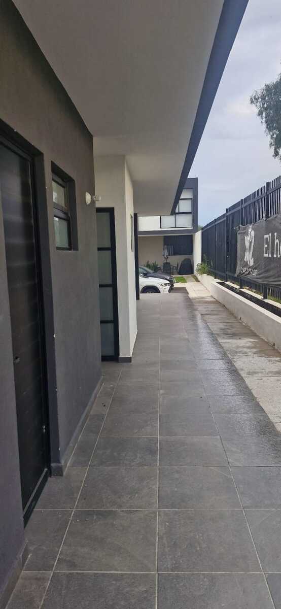 Casa de 93 m² de construcción distribuida en tres niveles: en planta baja cuenta con sala-comedor, cocina equipada, medio baño, patio de servicio, escaleras y un cajón de estacionamiento; en la planta alta tiene dos recámaras con clósets, estudio y baño completo compartido; en el roof garden se encuentra una recámara adicional con clóset y baño privado además de la terraza. La casa se ubica en un fraccionamiento privado con seguridad 24 horas y ofrece amenidades como área de juegos infantiles y salón de usos múltiples.