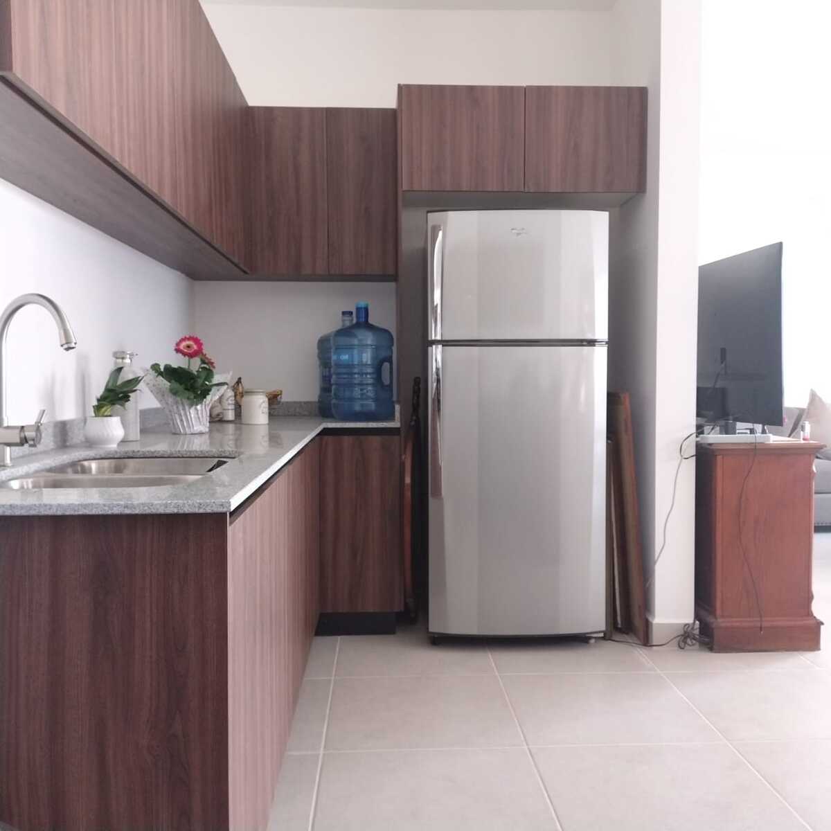 Modelo Framboyán: departamento nuevo de 159 m² con 2 recámaras y un espacio flex. Cuenta con cocina abierta con isla y terraza con vistas, 2 baños completos y 1 medio baño, 2 lugares de estacionamiento. Torre con amenidades como alberca, área de juegos infantiles, gimnasio y salón de usos múltiples.