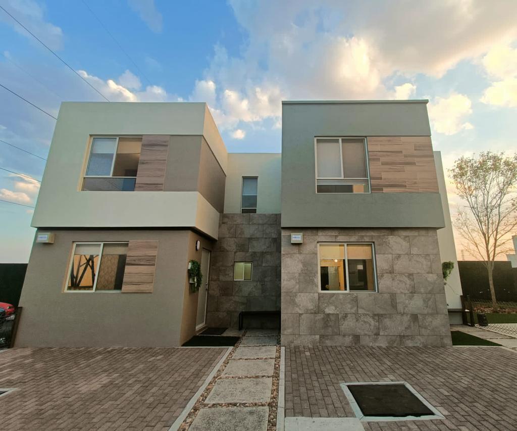 Casa nueva en venta en El Marqués, Querétaro. Diseño eficiente en 2 niveles con 2 recámaras, 1.5 baños, cochera para 2 autos y área de lavado. Ubicada cerca de vialidades, parques industriales y escuelas, con amenidades como áreas verdes, palapa, juegos y cancha, así como acceso controlado y entorno seguro.